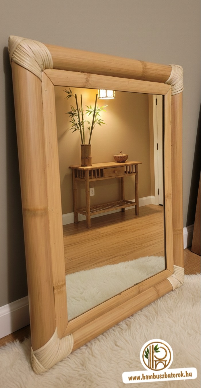Bambusz keretes tükör 60 × 45 cm – Természetes elegancia otthonába
